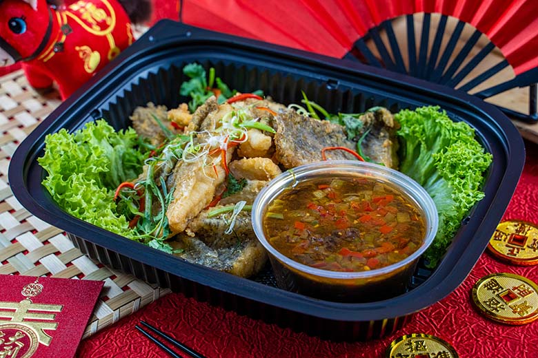 crabmeat wu xiang & signature pineapple chicken - CNY 26 DessertOsmanthus Jelly with Brewed Snow Fungus Tea